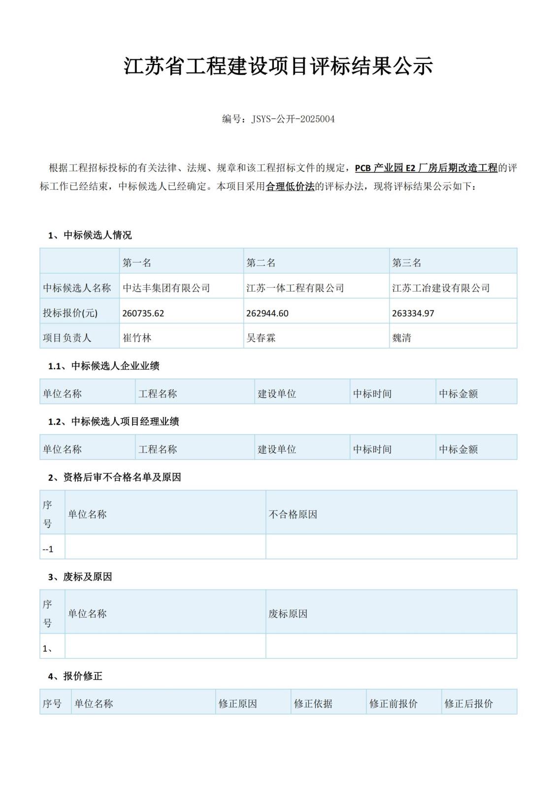 江蘇省工程建設項目評標結果公示