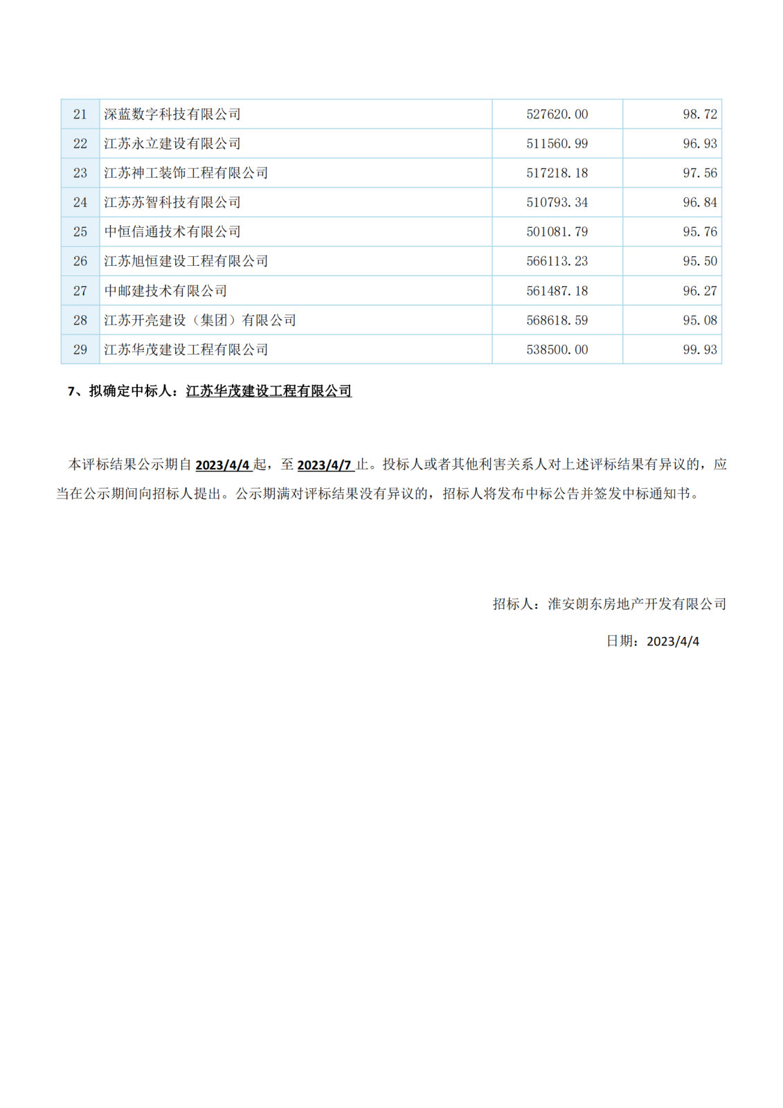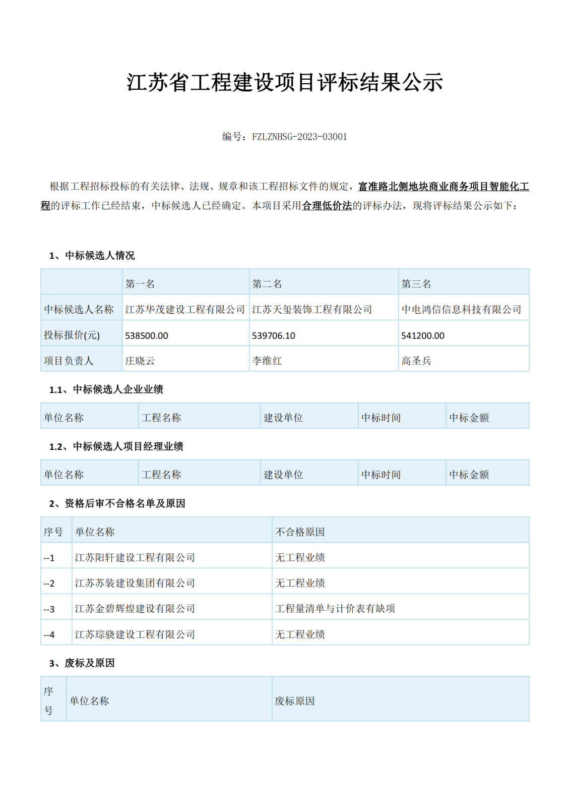 江蘇省工程建設項目評標結果公示
